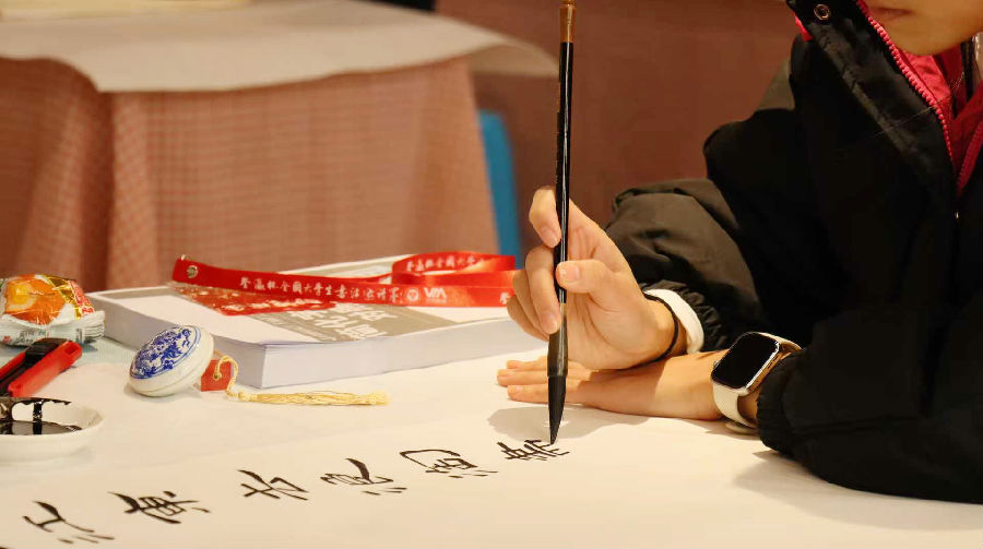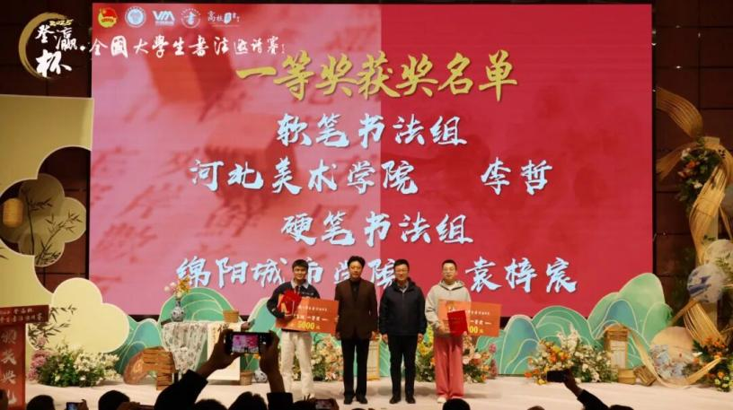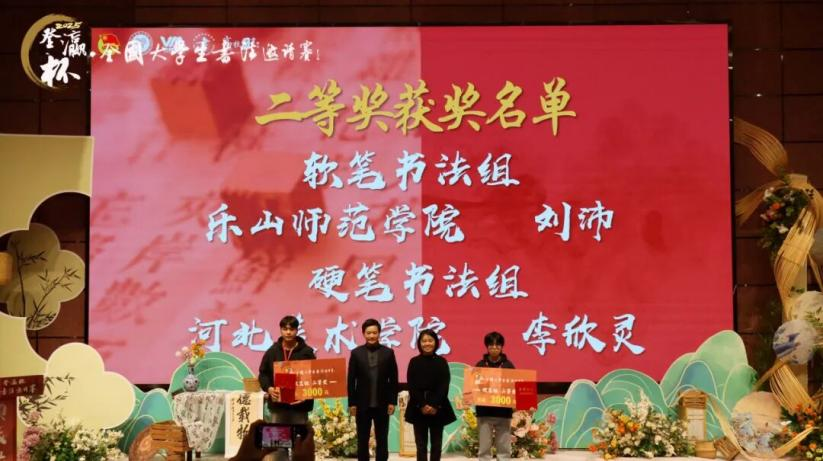 经过一上午的角逐,锦阳城市学院学生袁梓宸、河北美术学院学生李欣灵、重庆移通学院学生罗懿芹分获硬笔书法赛道前三名;河北美术学院学生李哲、乐山师范学院学生刘沛、南充科技职业学院学生徐智达分获软笔书法赛道前三名。