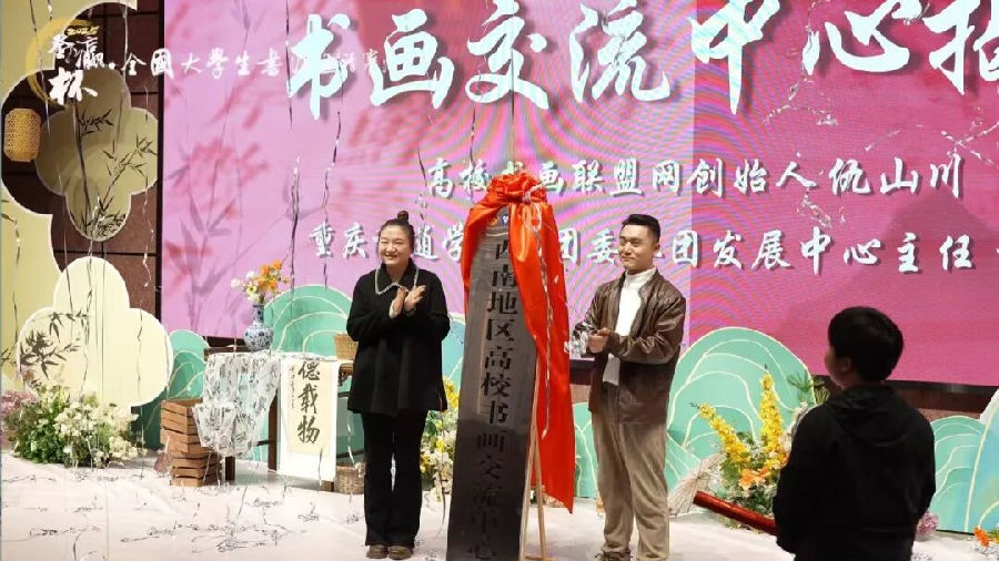西南地区高校书画交流中心揭牌仪式。重庆移通学院