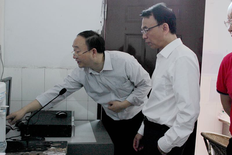 黄院长一行人等检查了监控系统、录音播放设备、通道安全等的准备工作。检查中,黄腾蛟院长以提问的方式,检查了相关工作人员、设备操作人员对业务是否熟悉,是否有能力处理应急情况。