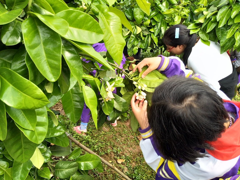 4月28日,垫江县龙岗小学校组织学生开展果树测量实地调查实践活动。本次活动是在重庆市深化教育领域综合改革试点项目《农村小学生劳动实践素养的改革》的部分领域引导下举行的。此次活动在27日,由涪陵农校的阮专家的对果树园艺的一些讲解后,于28日组织学生深入重庆瑞创生态农业有限公司垫江县新花村柚类母本园龙岗小学教育实践基地调查徐家白柚柚树的生长状态。
