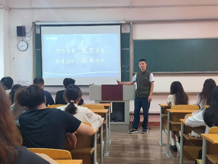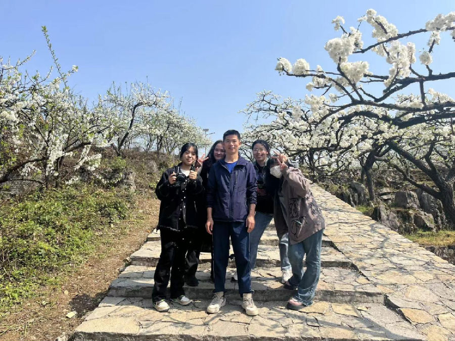 他深知思政教育不能 “纸上谈兵”,于是带着学生走出教室,把双凤李花节、鼓楼水果园变成 “社会大课堂”。在李花节,学生通过志愿服务与产业调研,见证乡村“赏花 + 采摘”产业链如何带动农户年均增收3万元;在水果园,他们亲手操作无人机植保、参与直播助农,既懂了现代农业的 “科技味”,又厚植了服务社会的责任感。此外,他还化身“就业导师”,收集百余个面试案例、模拟无领导小组讨论,甚至联系校友企业搭建就业渠道,帮百余学生修改简历、推荐20余个实习岗位,用实际行动为学生的职业之路保驾护航。