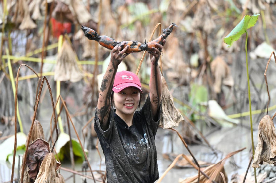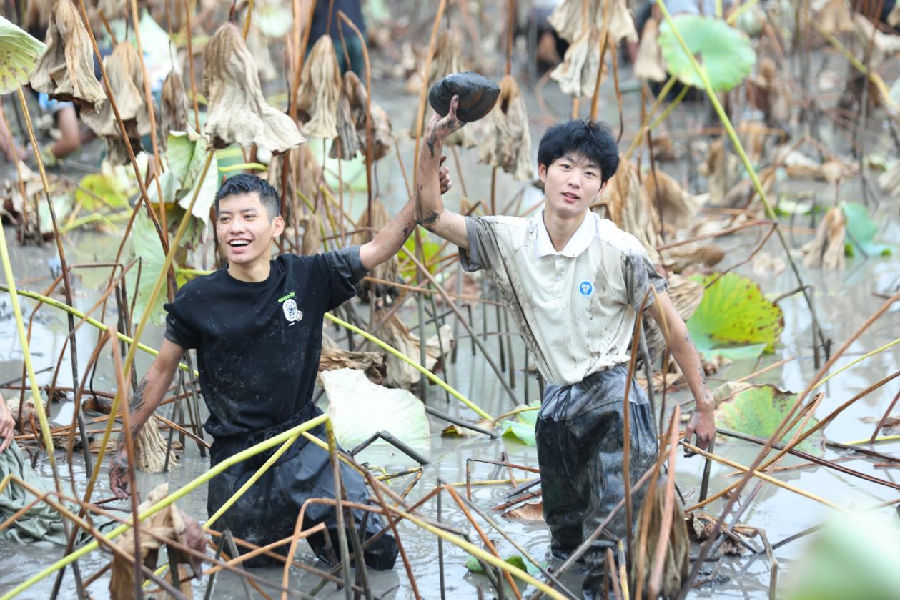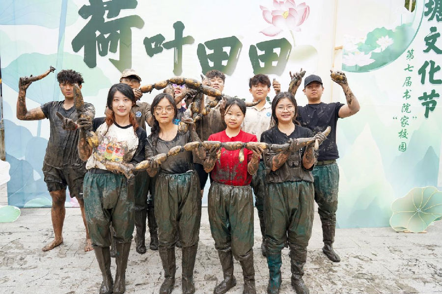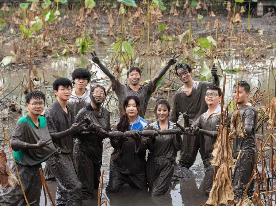 清晨的荷塘边,17支队伍、200余名师生与教职工家庭化身“采藕小分队”,在淤泥中开启了一场别开生面的“挖藕大战”。现场,不时传来兴奋地呼喊:“我挖到一根超大的!”“小心别把藕掰断啦!”欢声笑语中,师生们触摸泥土、认识莲藕,在泥泞中感受劳动的艰辛与收获的喜悦,让荷塘成了最生动的“劳动课堂”。各团队为争夺“年度藕王”使出浑身解数,最终满载而归。活动期间,师生们纷纷用相机定格“藕遇高光”的瞬间,泥点子与笑声齐飞,一个个“限定小泥人”成为这场劳动实践最鲜活的注脚。