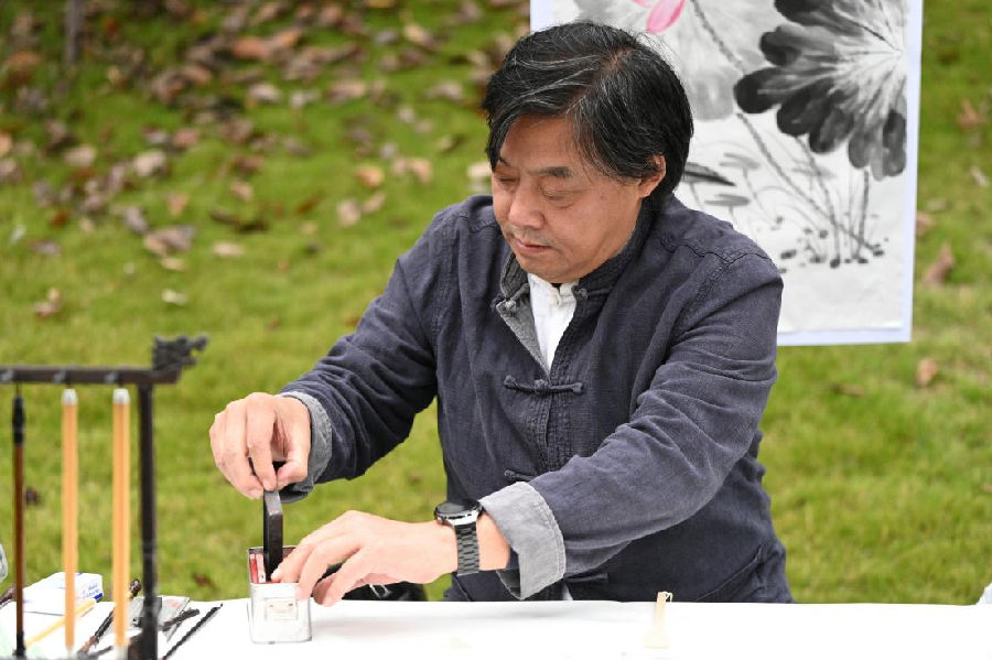 荷塘边的文化体验区,重庆中华传统文化研究会特邀专家李本森坐镇长案,为师生们指点书法笔法、讲解绘画技巧。现场,一位学生清亮地问道:“李老师,您看我这‘荷’字写得如何?”这一问题,道出了文化体验区的火热氛围。古老的技艺从书本走向实践,师生们在提按转折间感受文化脉动,在笔墨剪纸中坚定文化自信。指尖传承技艺,心中厚植情怀,这场文化体验让非遗不再是遥远的符号,而成了可触可感的青春记忆。