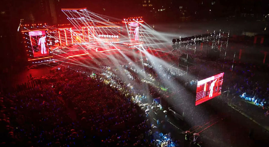 “环抱式的主舞台如港湾般展开,配合前后双升降台与T型延展台,在激光与灯光映射下勾勒出引力的轨迹。”此次迎新晚会的导演、学校艺术教育中心教师介绍道。“舞台中央矗立的灯塔不仅是视觉焦点,更象征学校在科技与人文交汇处,成为照亮学子前行之路的温暖指引。”