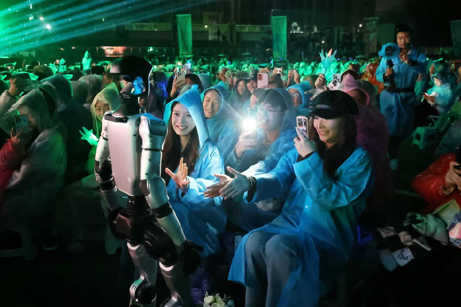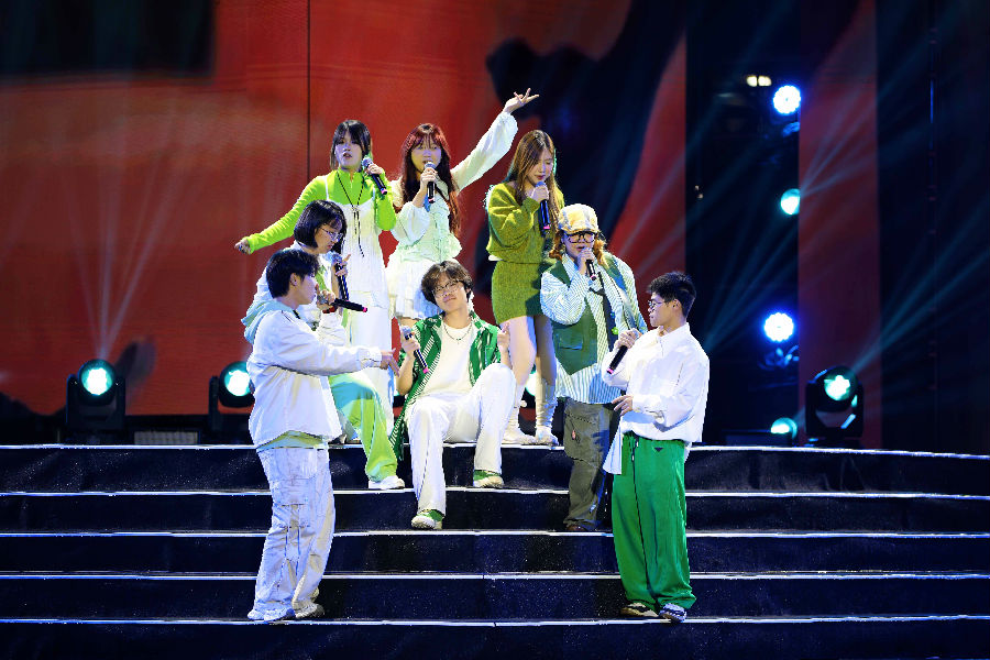 节目形式涵盖歌舞、话剧、音乐剧、阿卡贝拉等多种艺术形态。其中,由清羽民乐团带来的民乐与电音融合节目,配合“机器狗”互动表演,成为现场一大亮点;来自大凉山尔马千村爱慕小学的10余名孩子,跨越700多公里与校合唱团同台合唱,传递温暖与鼓励,诠释“教育援助+舞台共创”的公益理念。压轴环节,创作女歌手金玟岐带来《岁月神偷》《姗姗》等多首经典作品连唱,为晚会画上句号。
