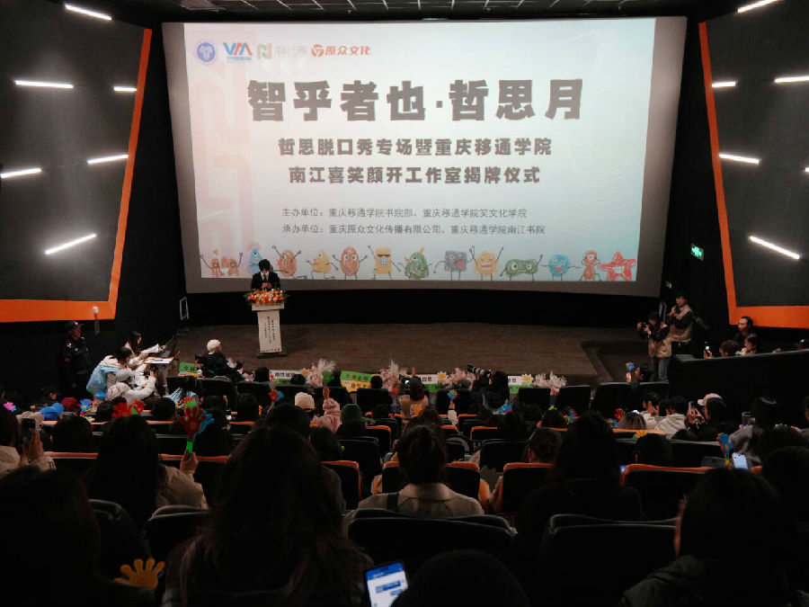 当哲学走出书本,笑声开始承载思考。11月26日,由重庆移通学院书院部、重庆移通学院笑文化学院主办,南江书院与重庆原众文化传播有限公司联合承办的“智乎哲也”哲思月脱口秀专场特别活动在万画影城开展。活动现场,原气喜剧“梗王”章鱼哥带来了融合哲理与幽默的分享表演,同时“南江喜笑颜开工作室”也在活动现场揭牌成立。