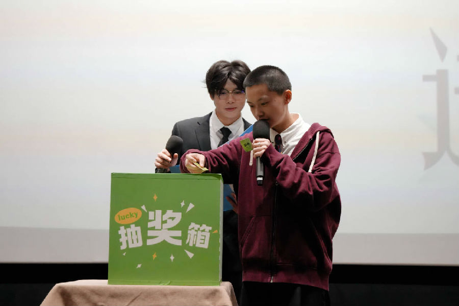 在全体师生的见证下,抽奖环节将现场氛围推向新的高潮。章鱼哥依次抽取的四位幸运观众,获得了由校企双方精心准备的“惊喜大礼包”,其中包含原气喜剧演出票、章鱼哥亲笔签名及精美周边。这份承载着欢笑与哲思的礼物,既是对同学们积极参与的感谢,更是对“笑着思考”理念的生动诠释,让哲学的智慧在轻松愉悦的互动中延续传递。