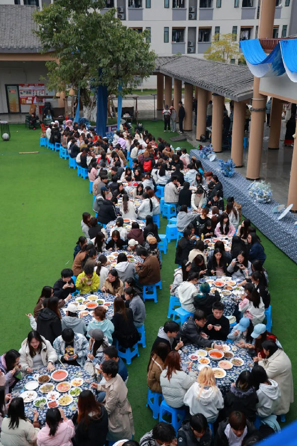 重庆移通学院校团委社团发展中心负责人杨佳燕介绍,本次活动是学校连续第三年举办长桌宴文化活动,今年首次尝试让学生体验官深度参与非遗传承人的对接与互动。从前期与传承人沟通内容、协调场地,到现场组织引导、讲解服务,均由学生体验官全程跟进。“我们希望通过这种方式,让青年学子不再是文化的‘看客’,而是成为传承链条中的一环。”(编辑:涂茂林)