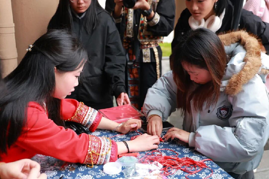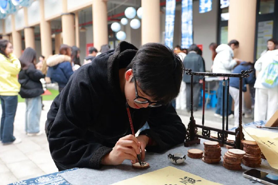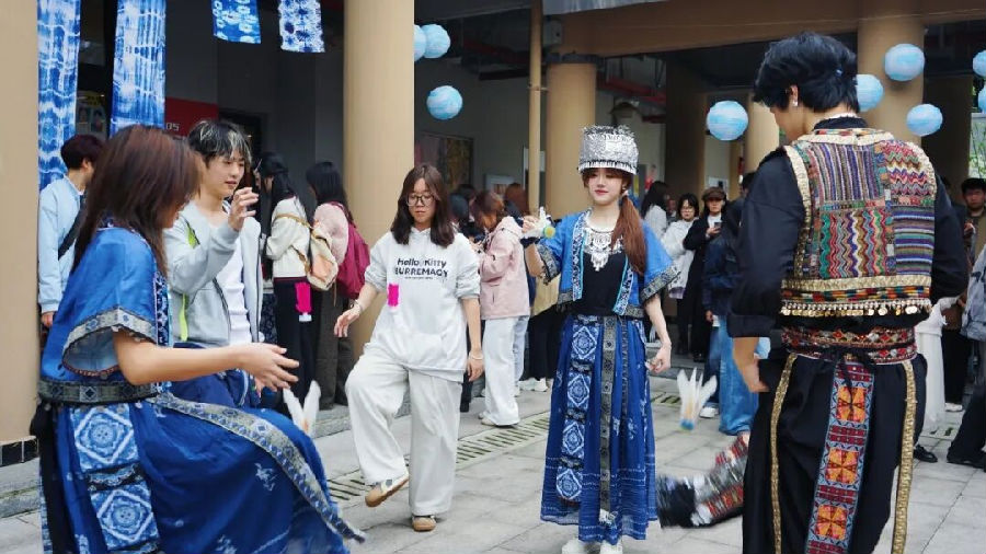 “以前总觉得非遗是很遥远的东西,今天亲手做了扎染、剪了窗花,才发现传统手艺其实很有意思。”来自学校数字经济商学院大三的学生罗俊说。